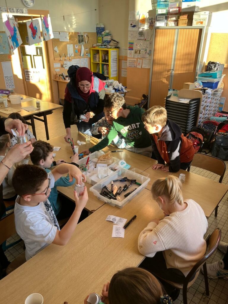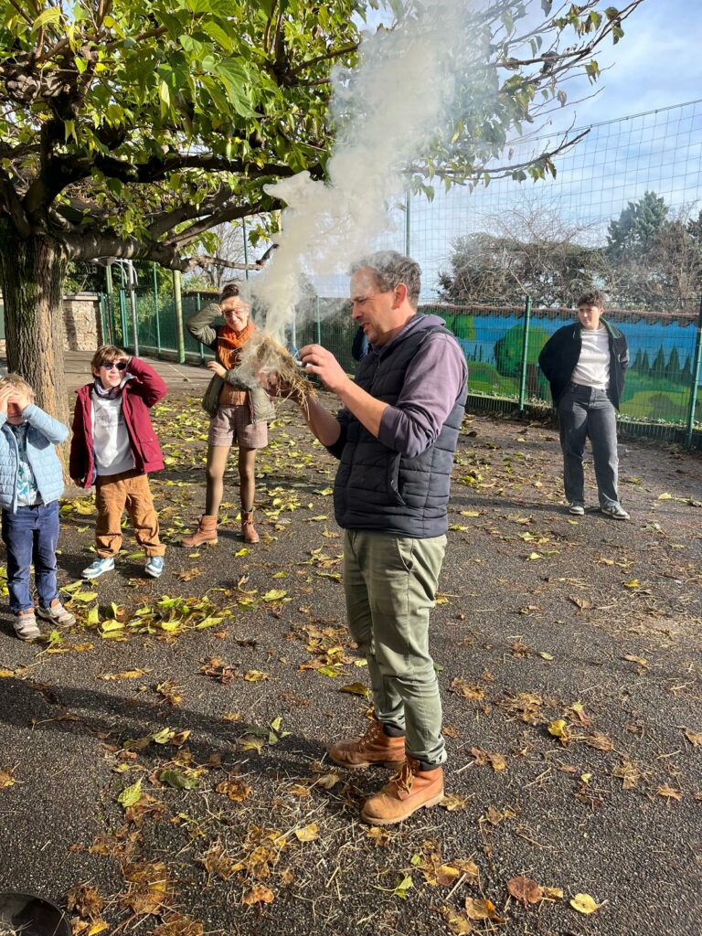 Grâce à l’intervention de l’Atelier des Saisons, les élèves de CE1 et CE2 ont pu participer à une matinée sur le thème de la Préhistoire. De nombreuses activités étaient prévues : réalisation d’œuvres préhistoriques, confection de lumignons, visionnage d’un documentaire sur les hommes de Cro-Magnon … Les élèves ont même fait démarrer du feu et ont fait grillé des chamallows dessus. Une bonne matinée bien remplie !