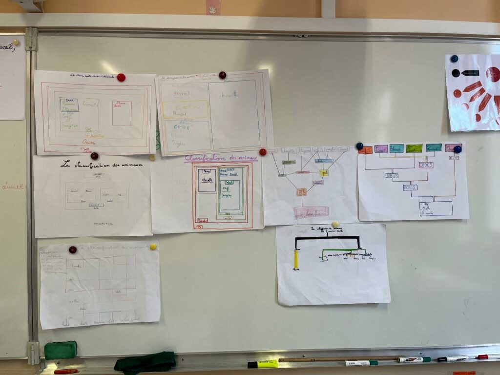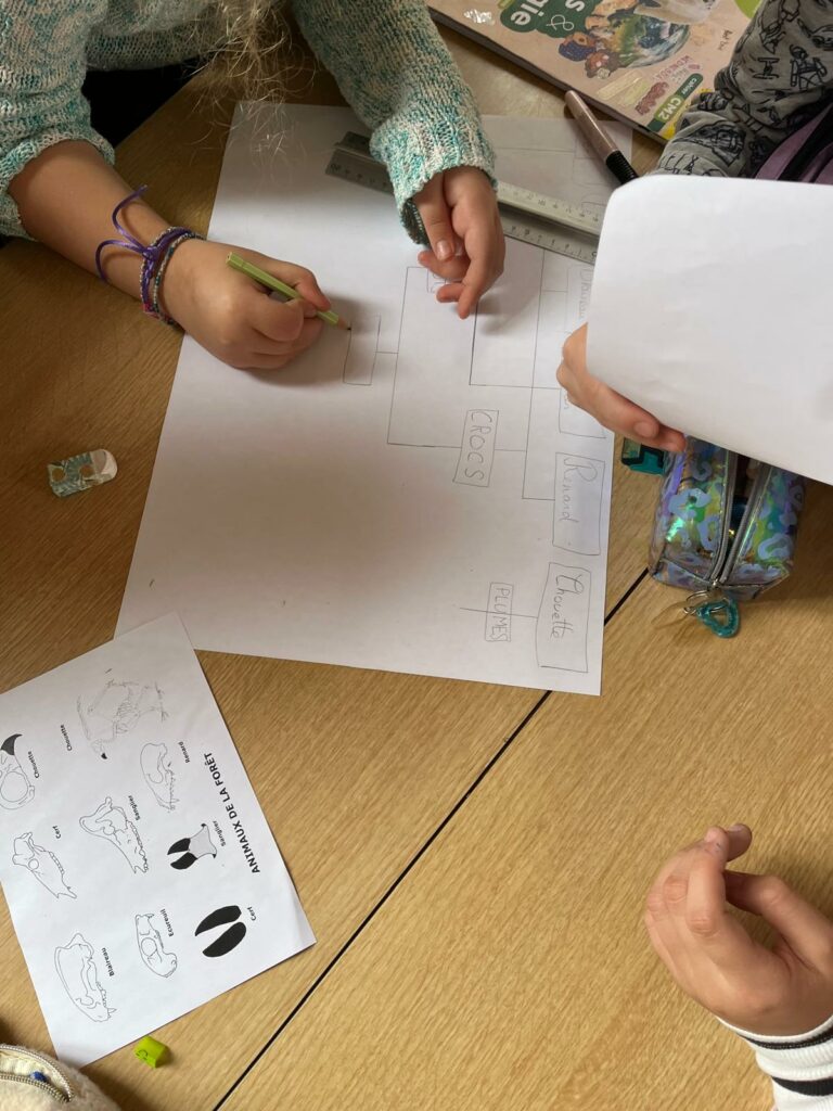 Travail de groupe avec un secrétaire et un rapporteur : classification des espèces avec élaboration d’un arbre phylogénétique.