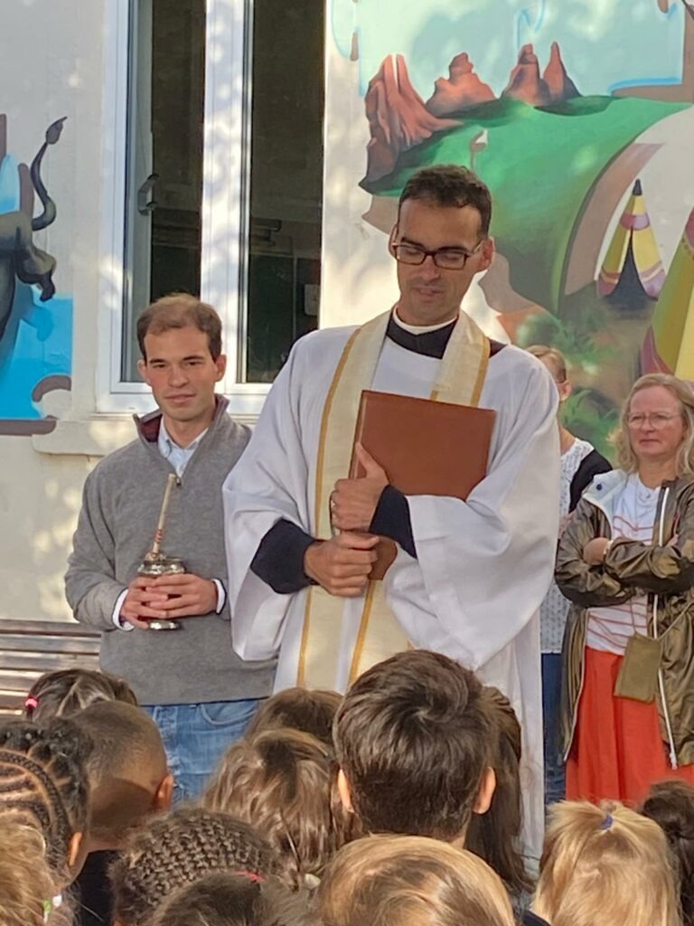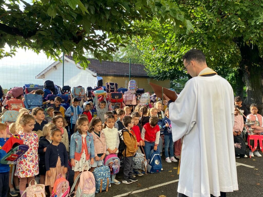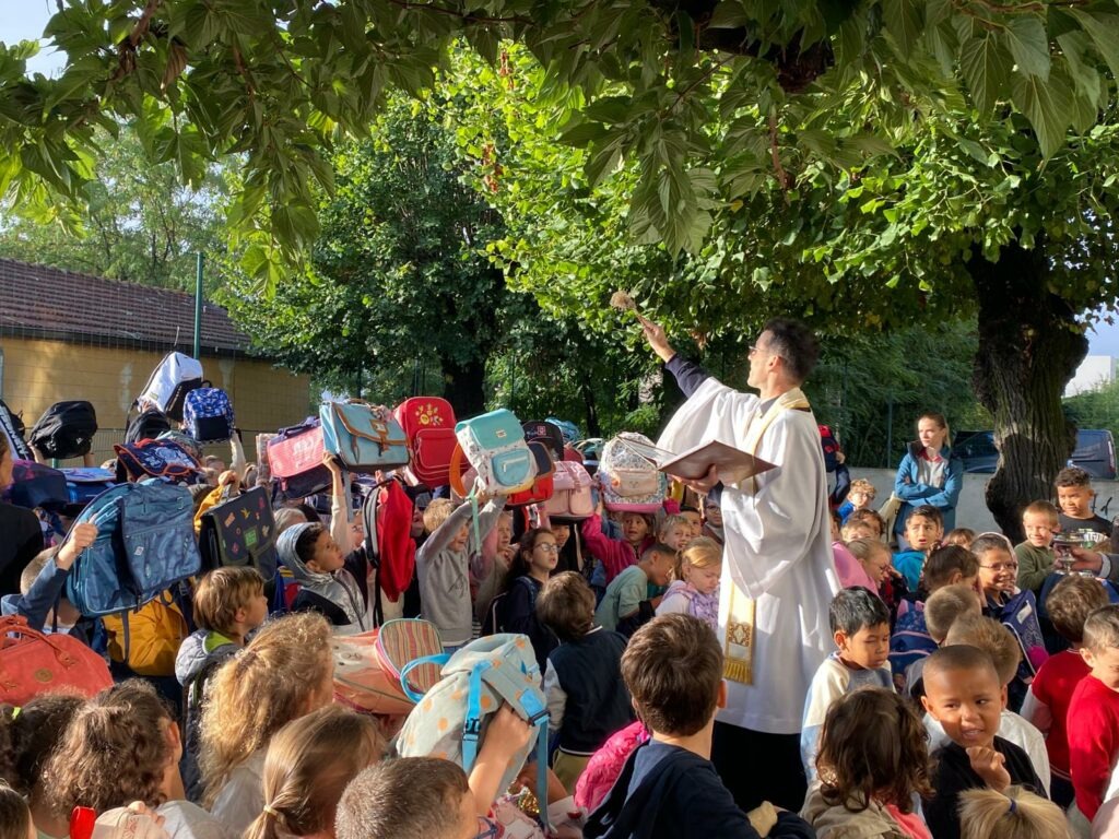 L’année a bien démarré avec la bénédiction des cartables par Don Félix-Henri. Un beau moment partagé avec les élèves !