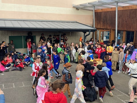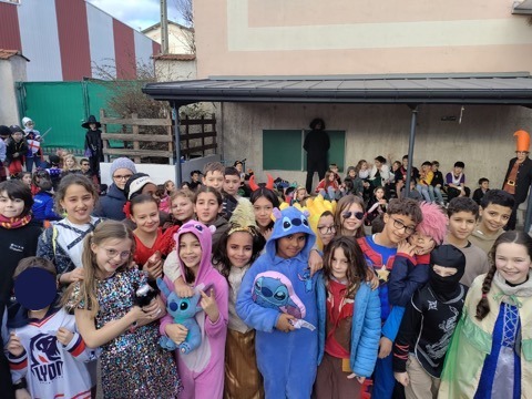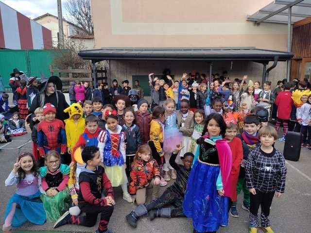 Mardi c’était carnaval à l’école ! Après un défilé dans la cour devant les autres classes (avec un beau soleil !), l’APEL a organisé une boum avec gourmandises, canon à bulles et confettis ! De quoi ravir petits et grands… qui se sont aussi déguisés !