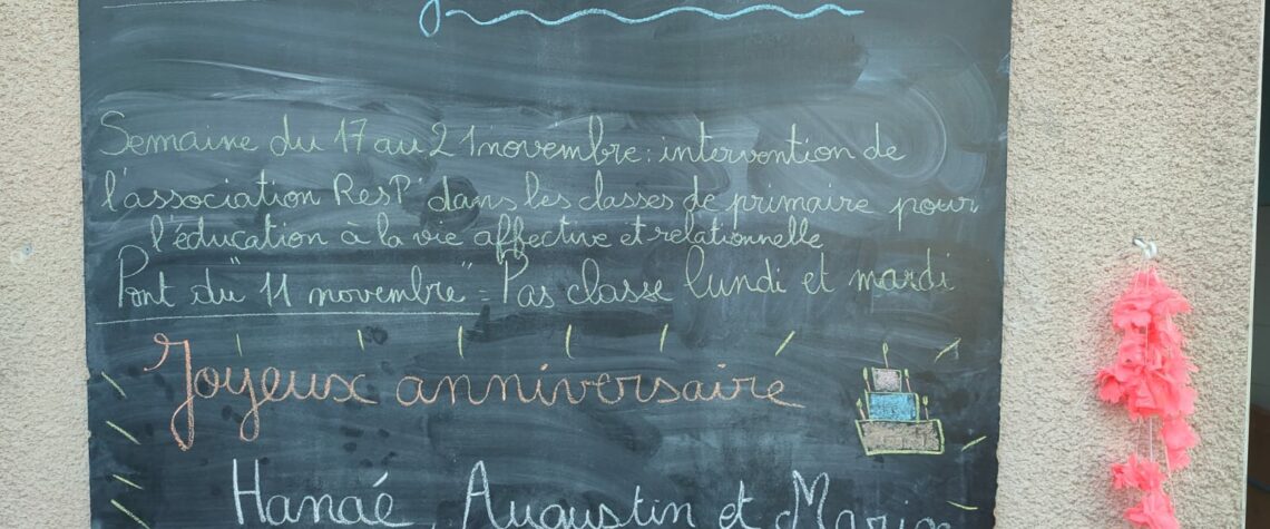Jeudi 13 novembre 2025 – Belle fête aux Brice ! Joyeux anniversaire Hanaé (CE2), Augustin (CM2) et Marin (CM2) !