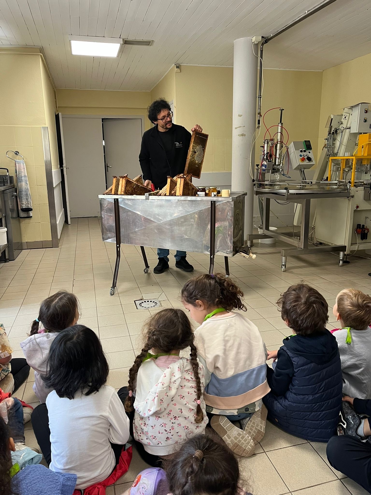 Les élèves de maternelle se sont rendus à Roche-la-Molière pour visiter une miellerie. L’apiculteur a expliqué le fonctionnement de la ruche, le cycle des abeilles. Les enfants ont pu observer des abeilles et chercher la reine parmi plein d’abeilles. l