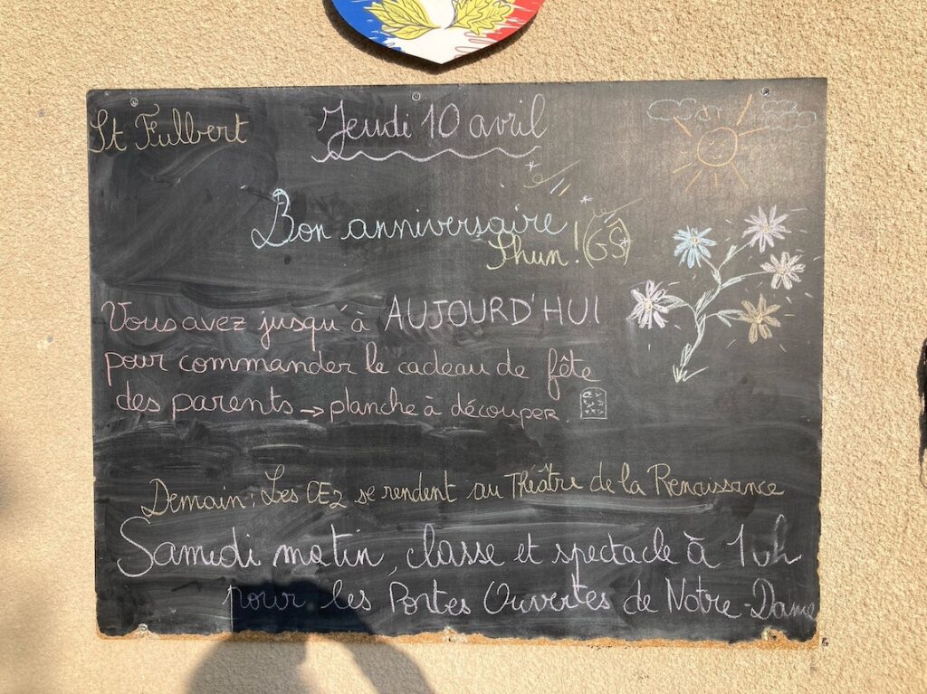 Jeudi 10 avril 2025 – Saint Fulbert ! Un très bel anniversaire à Shun en GS ! Par admin-maitresseLe 9 avril 2025Dans Actualités générales, Tableau info