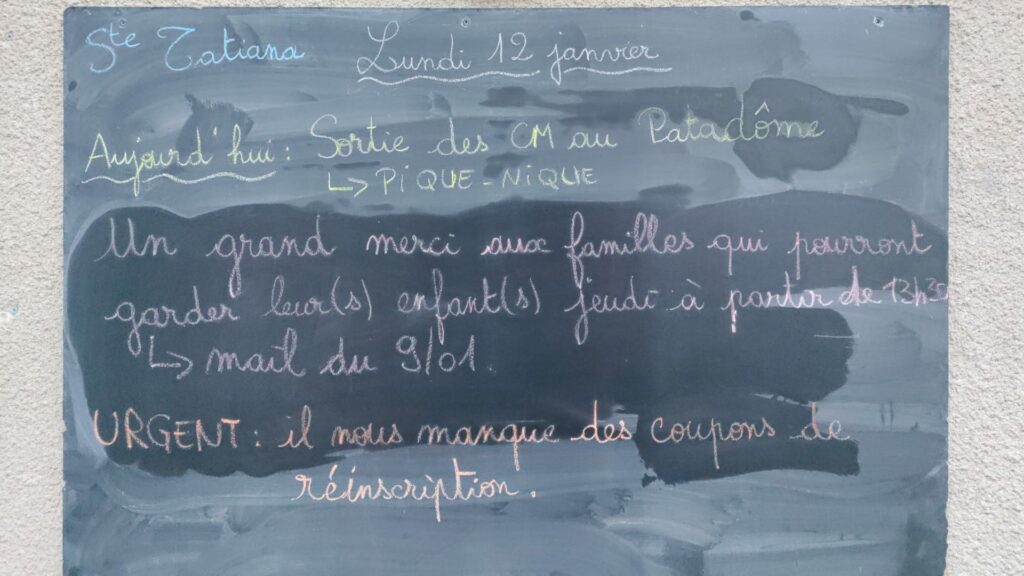Lundi 12 janvier 2026 – Belle fête aux Tatiana ! Par admin-maitresseLe 11 janvier 2026Dans Actualités générales, Tableau info