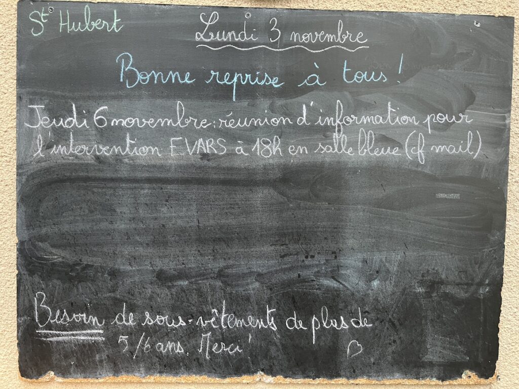 Lundi 3 novembre 2025 – Belle fête aux Hubert ! Bonne reprise ! Par admin-maitresseLe 3 novembre 2025Dans Actualités générales, Tableau info