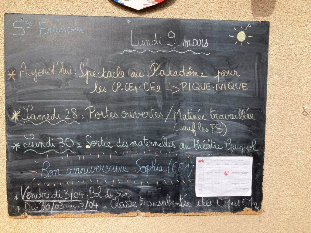 Lundi 9 mars 2026 – Belle fête aux Françoise ! Joyeux anniversaire Sophia en CE1 ! Par admin-maitresseLe 8 mars 2026Dans Actualités générales, Tableau info