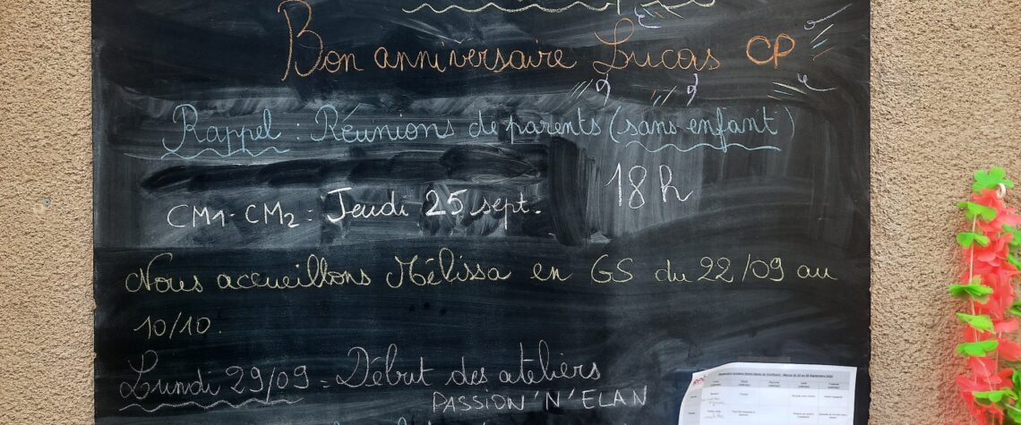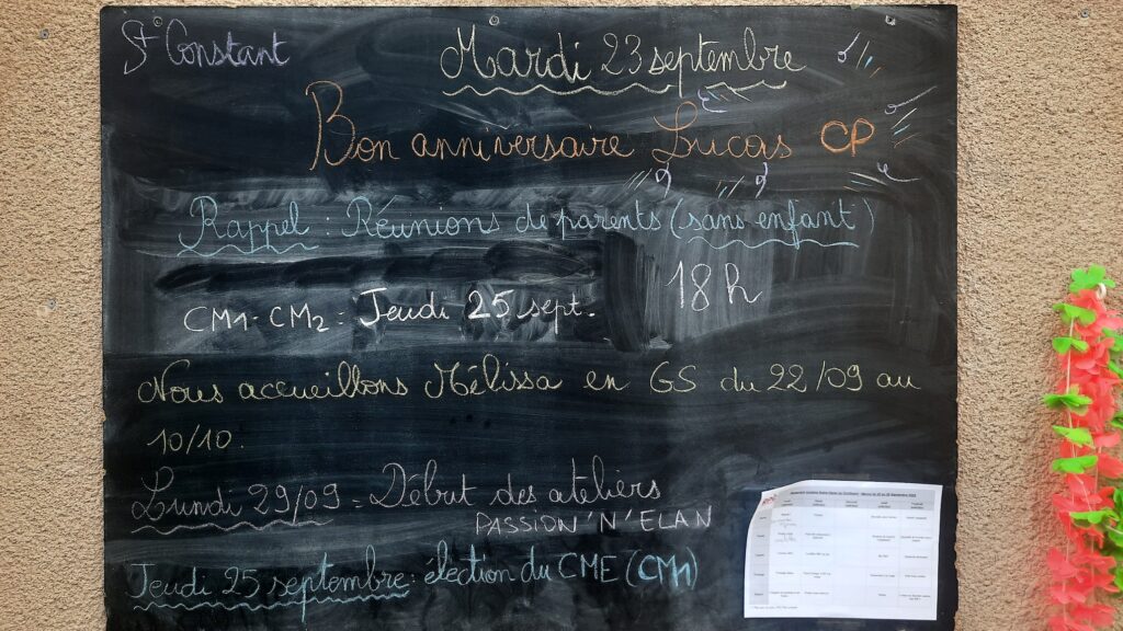 Mardi 23 septembre 2025 – Belle fête aux Constant ! Un très bel anniversaire à Lucas en CP ! Par admin-maitresseLe 23 septembre 2025Dans Actualités générales, Tableau info