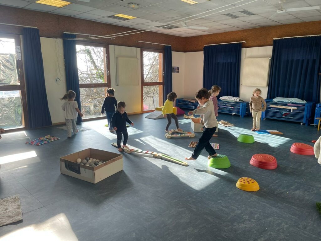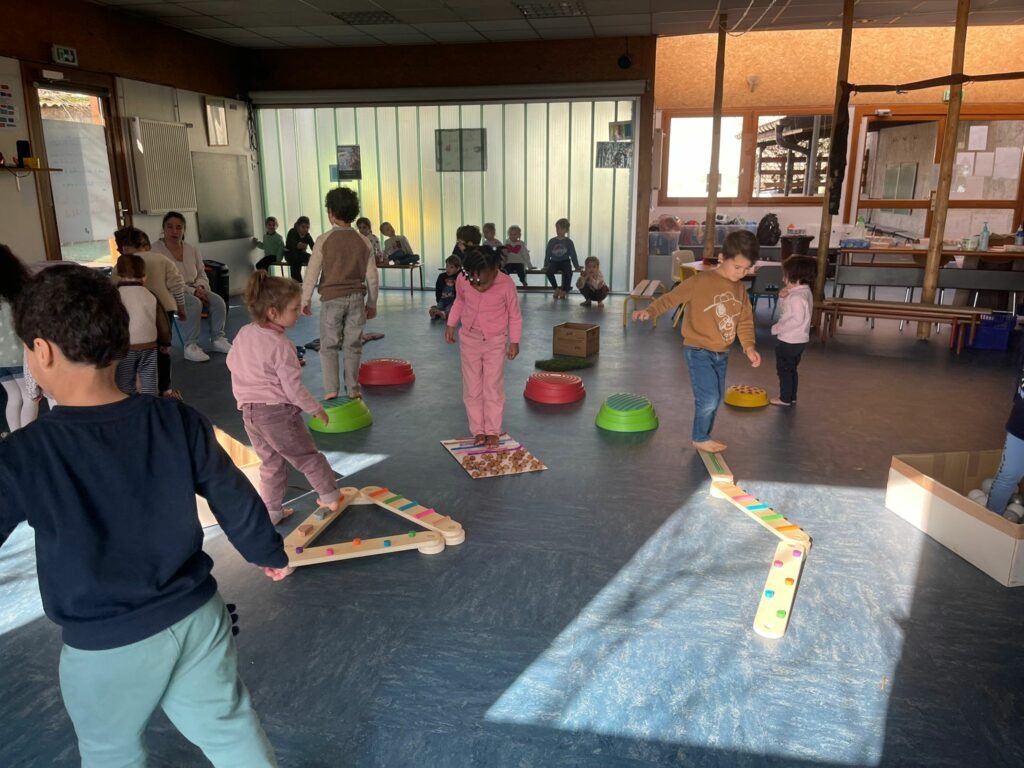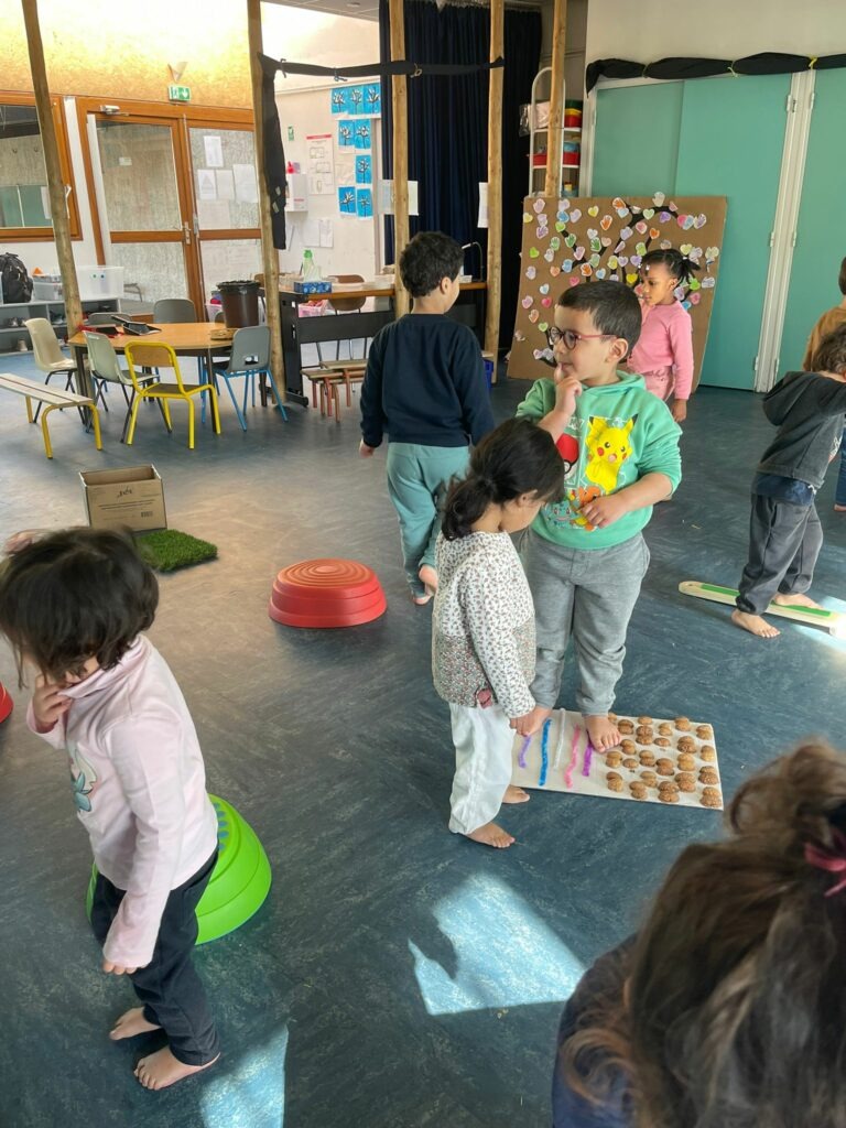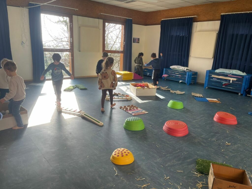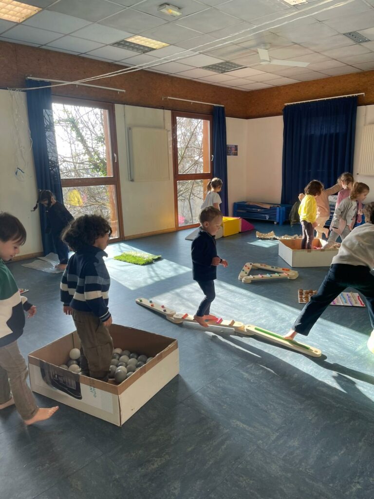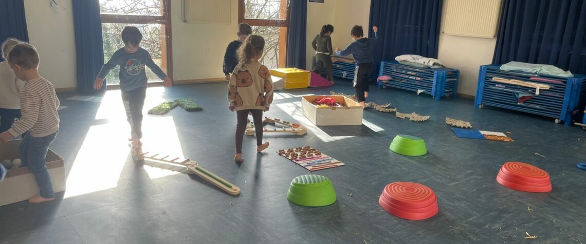 Parcours sensoriel en maternelle Par admin-maitresseLe 5 mars 2026Dans Actualités Cycle 1, Actualités générales, Actus GS, Actus PM S Création d’un parcours le long duquel les enfants marchent pieds nus et découvrent ainsi différentes matières.