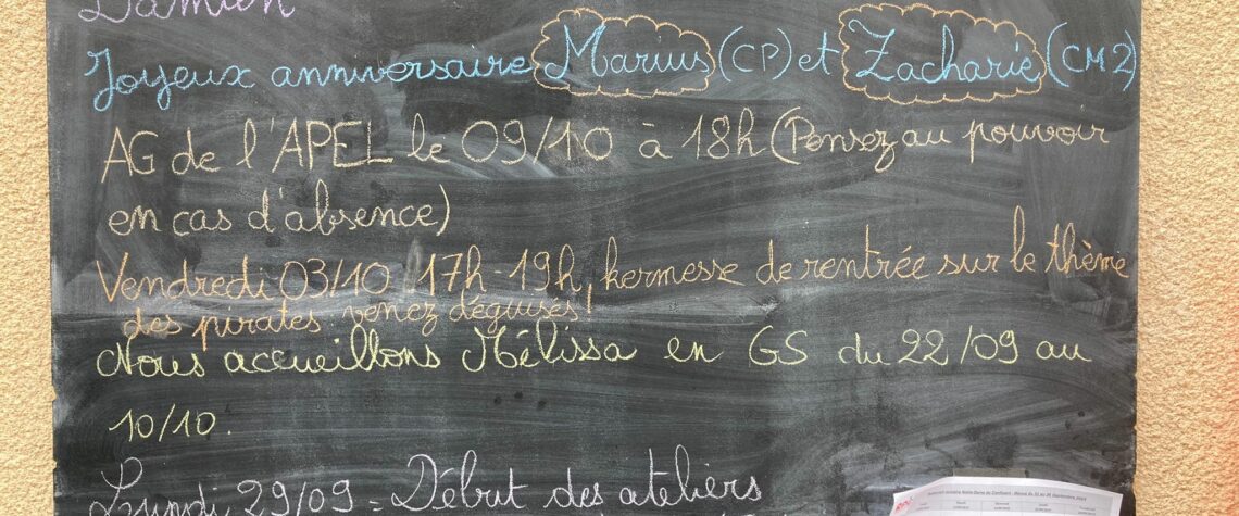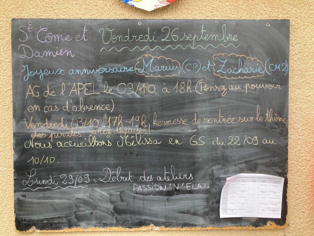 Accueil>Actualités générales>Vendredi 26 septembre 2025 – Saint Côme et Damien ! Happy birthday to Marius (CP) et Zacharie (CM2) !