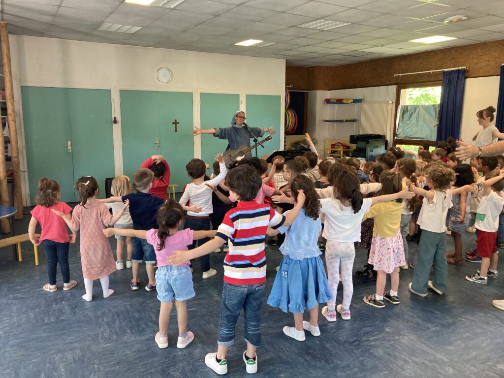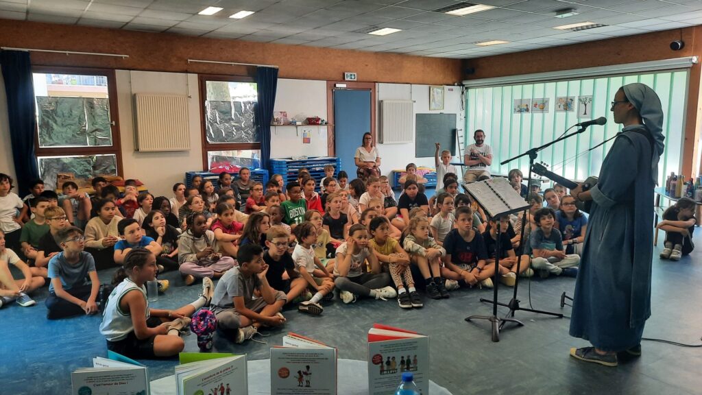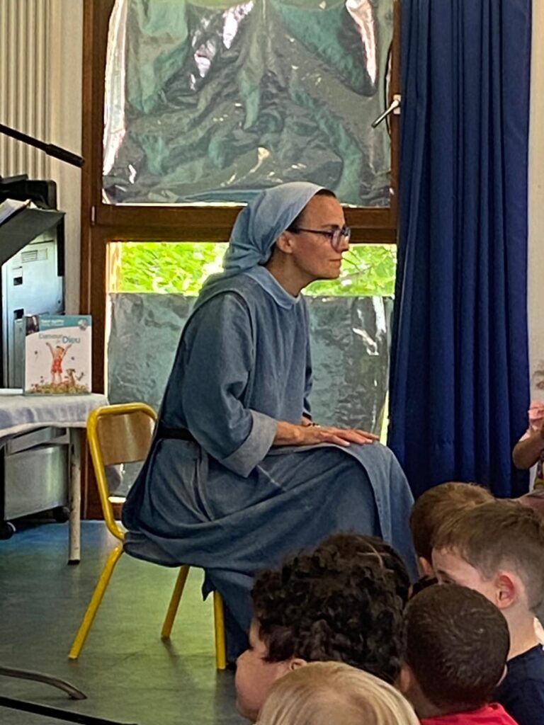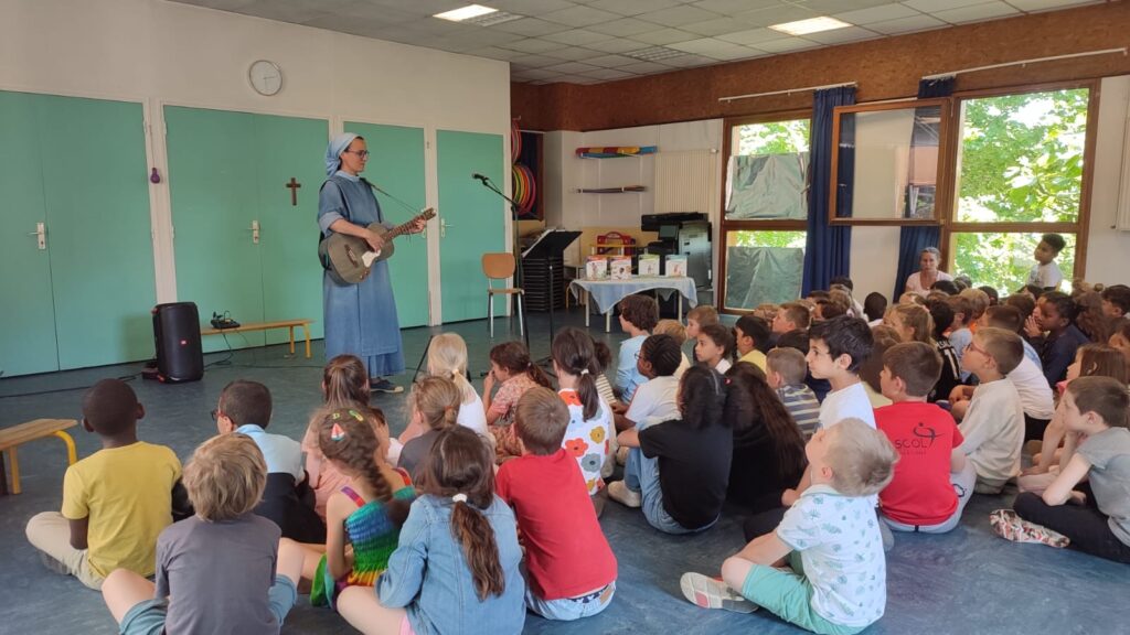 Sœur Agathe est venue rencontrer les élèves de notre école. Nous avons pu avoir un temps d’échange, d’éveil à la foi et de chants adaptés à chaque cycle.